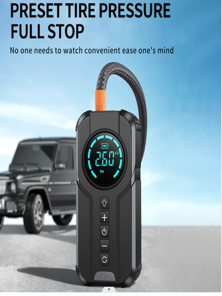 Preset Tire Pressure Feature: The jump starter and air compressor comes with a preset tire pressure feature that automatically stops the inflation process once the desired tire pressure is reached. This eliminates the need for constant supervision, providing users with convenience and peace of mind.