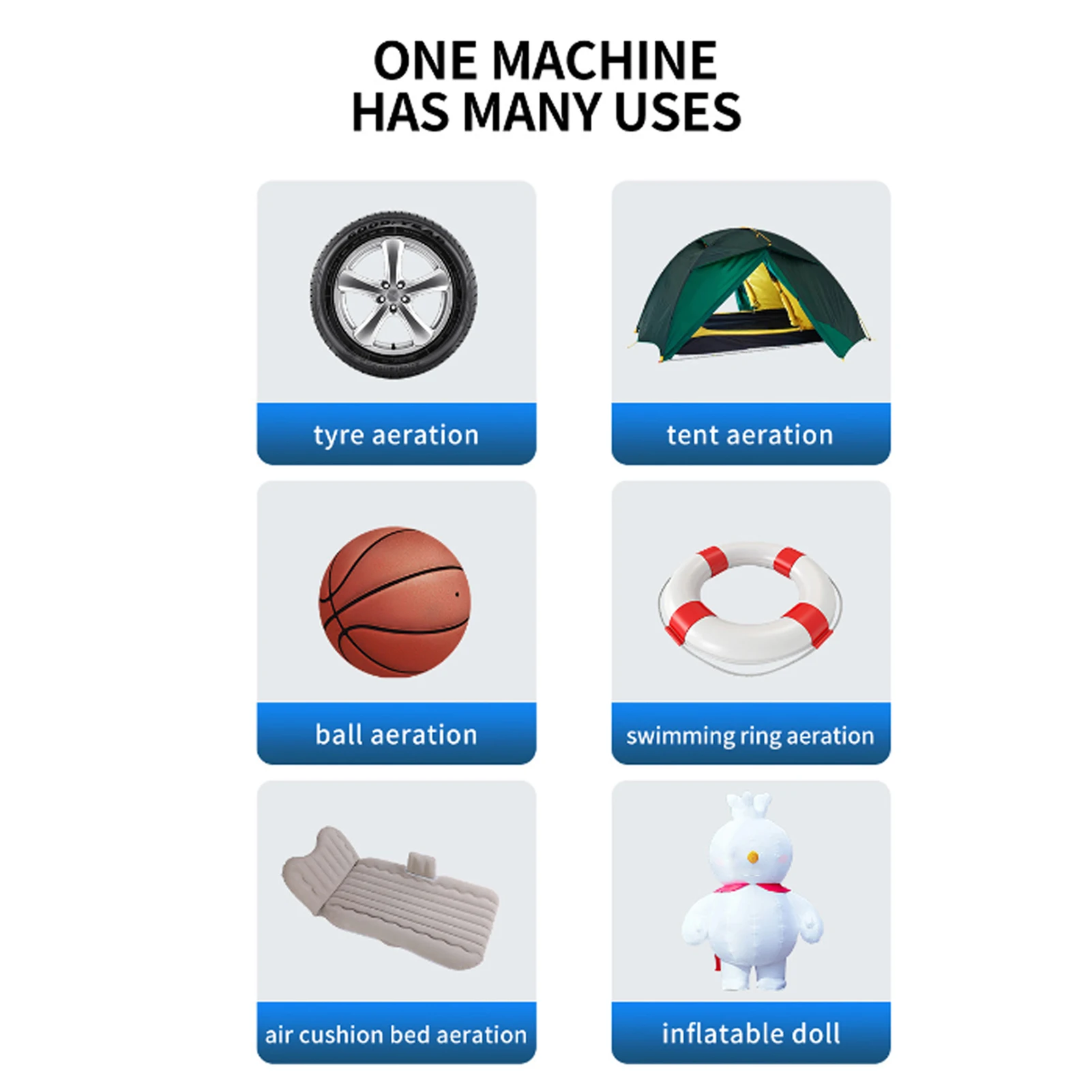 Multi-Purpose Inflation: This versatile device can be used for inflating tyres, tents, balls, swimming rings, air cushion beds, and inflatable dolls, making it a handy tool for a variety of situations.